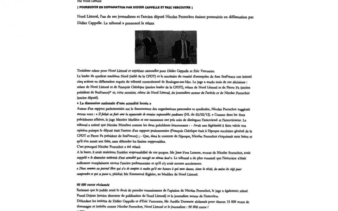 Troisième relaxe pour Nord Littoral et septième camouflet pour Didier Cappelle et Eric Vercoutre